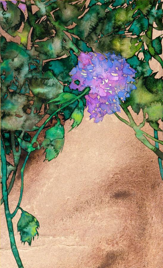 Hauptfarben: violett, grün, braun