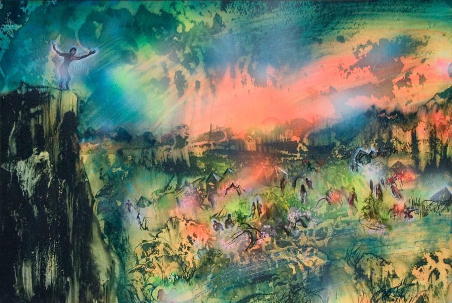 Medium: mixed media (acrylic, watercolor on paper)